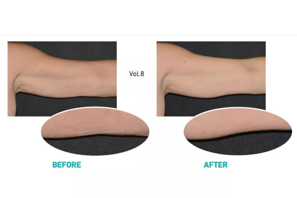 - Provides more firmness and tonicity to the body (tested in vivo on the arms pictured to the left)